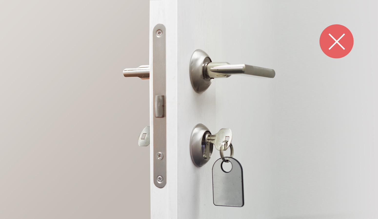 A common type of deadbolt lock that requires a key to unlock from the outside, while the inside is operated using a thumb-turn mechanism.
