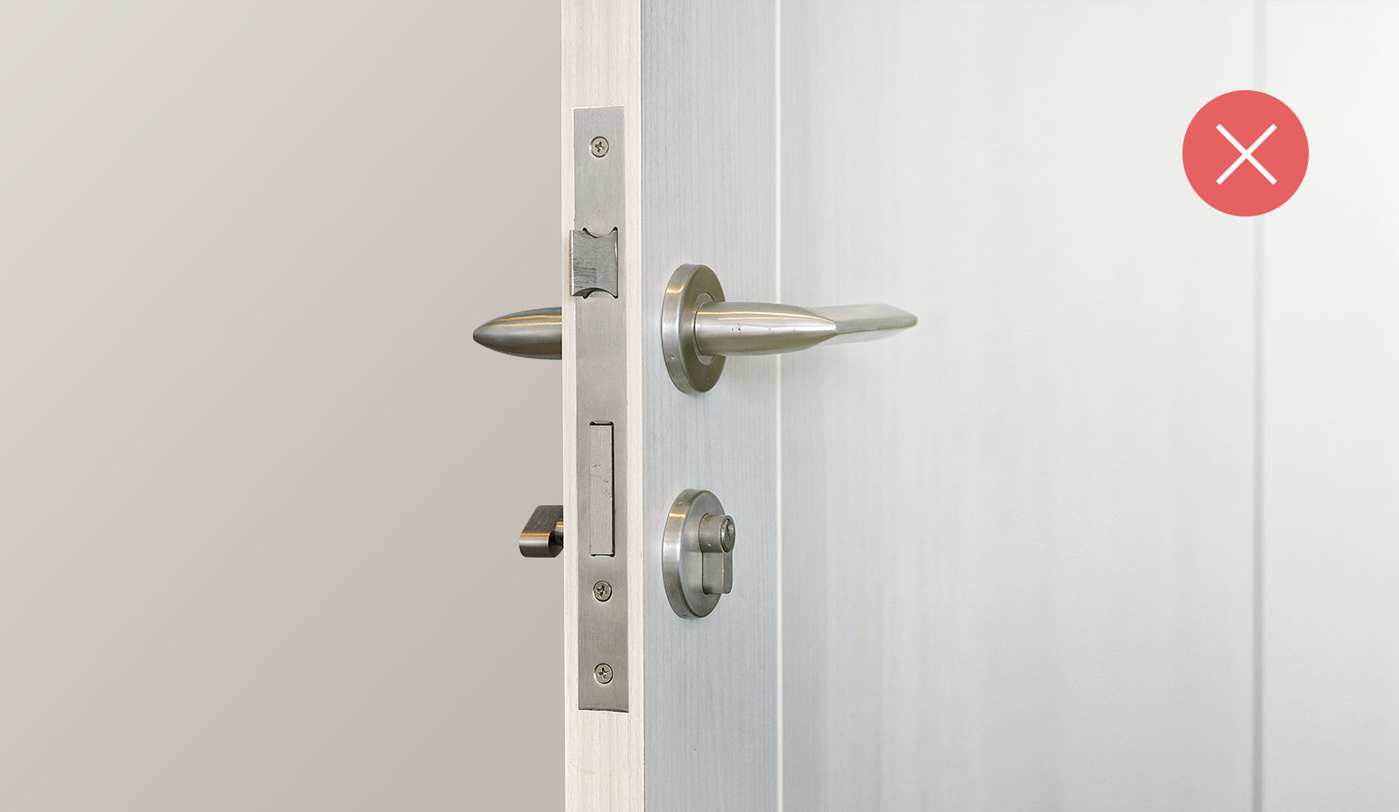 Installed inside a pocket (mortise) cut into the door, and has both a latch as well as a deadbolt.