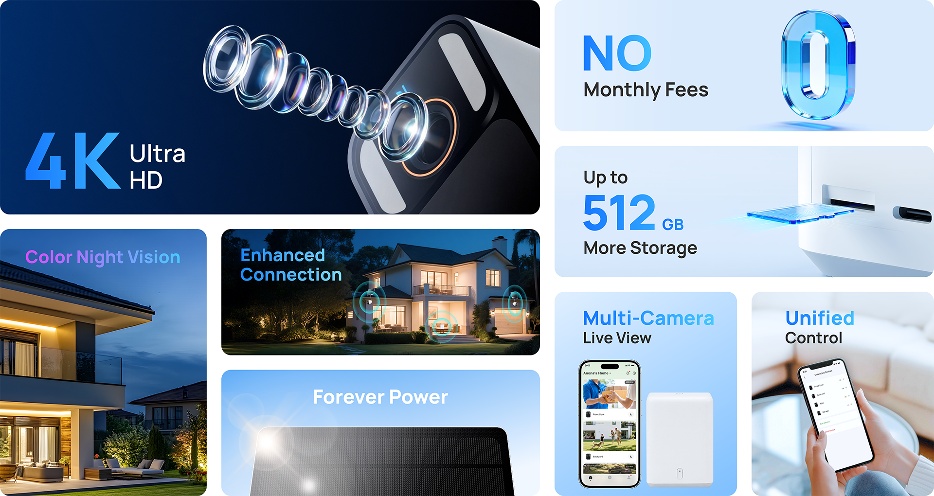 - Centralized Storage & Privacy:Supports massive local storage with up to 512GB SD card; data is encrypted and stored at Smart Base, ensuring video security even if the outdoor camera is damaged.
