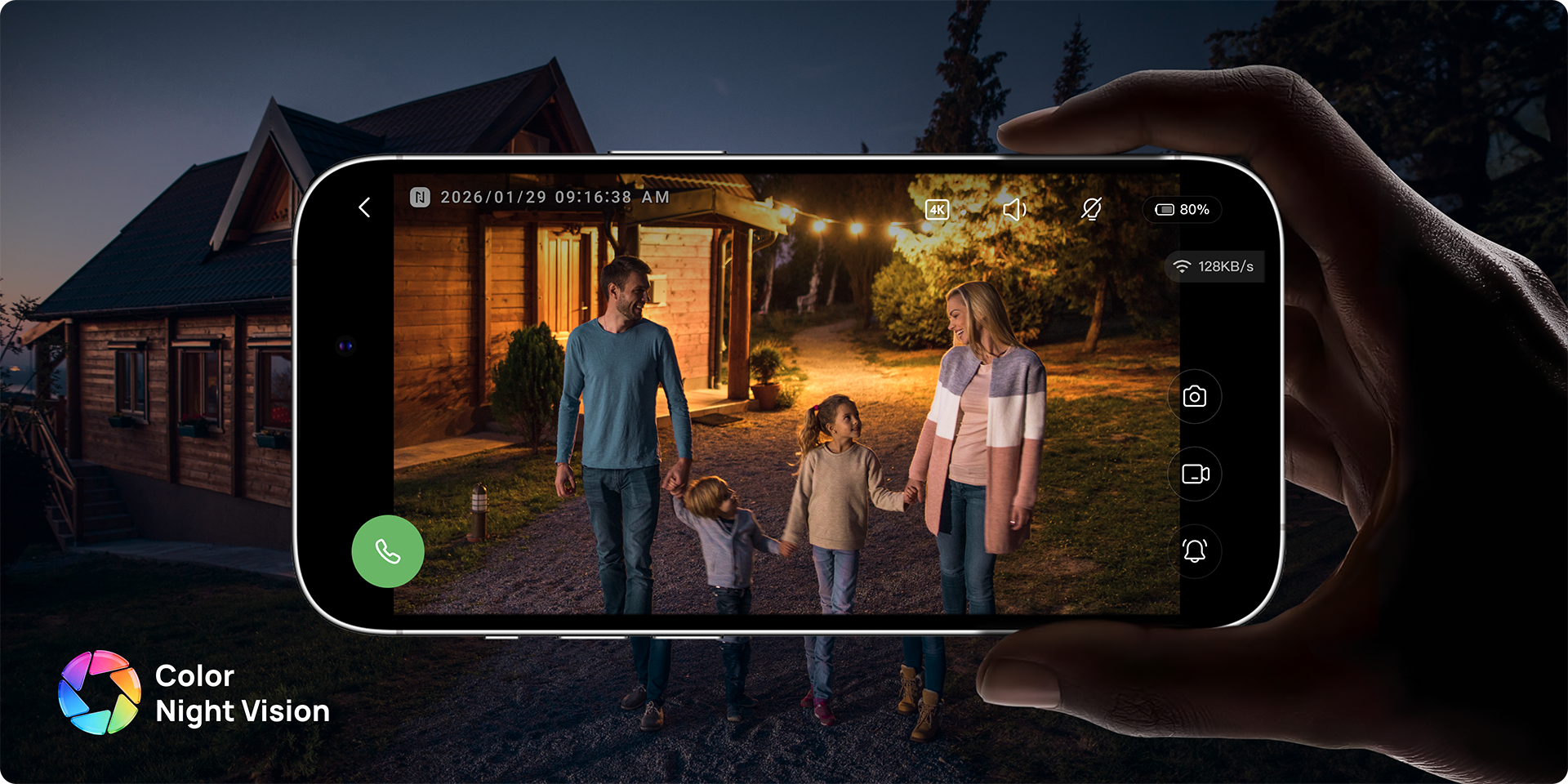 Instead of grainy black-and-white footage, Anona Aurora brings night scenes to life with advanced color night vision, allowing you to see people, vehicles, and surroundings in full color after dark.