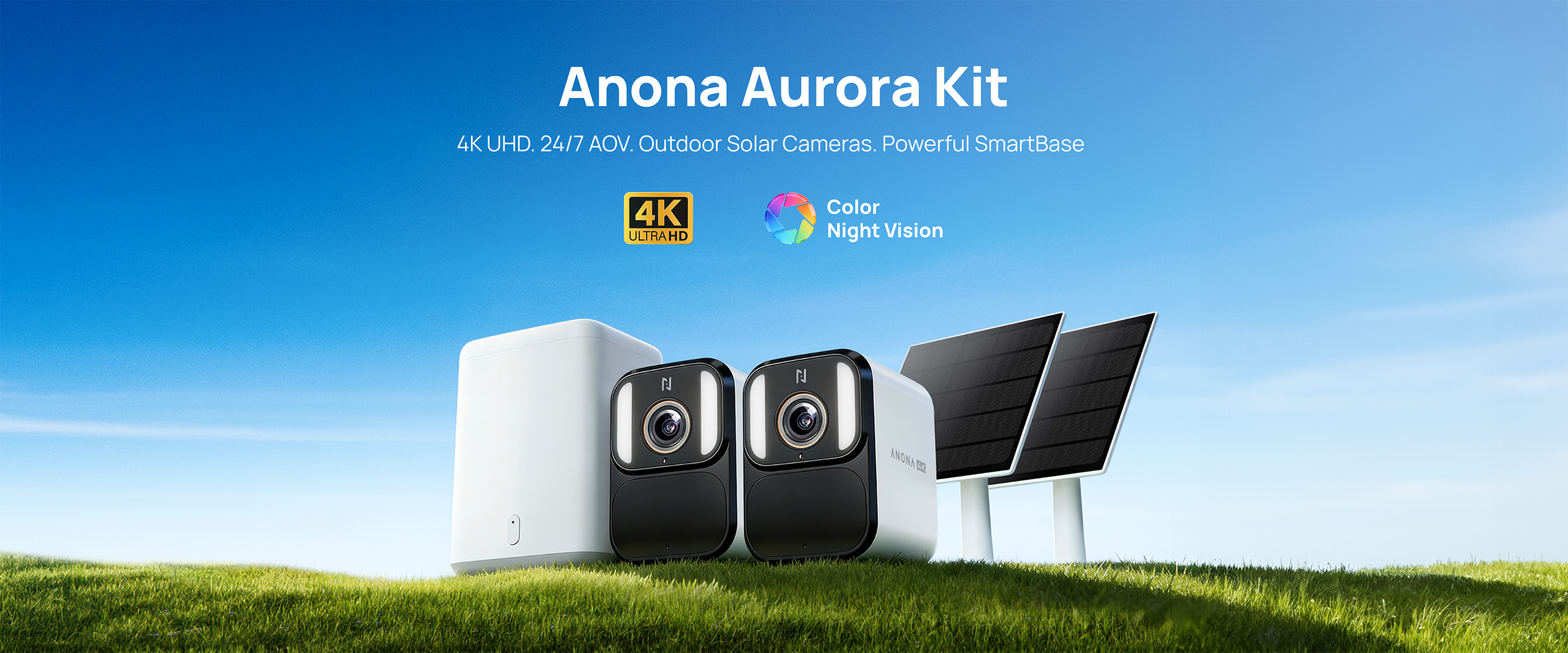Anona Aurora + SmartBase Kit | 4K UHD 24/7 AOV Solar Outdoor AI-powered Camera Security System
